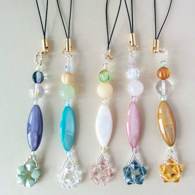 ペンタゴン(五角形)のしっぽからすっくと伸びるストラップ。 そこからカラーシェル、大きめの天然石、しましまカットのビーズと続きます。 これまた不思議なかたちですが…なんだか見てると元気になります。 ストラップですが、カバンや小物につけてお楽しみいただけます。 ・天然石(10mm) ・カラーシェル(30mm) ・チェコビーズ他 ・テグス ・金具 ------------------------------------------------------------- type A :パープル type B :ブルー type C :ホワイト type D :ピンク type E :イエロー ------------------------------------------------------------- サイズ:約9cm(モチーフ部分) *テグスで編んでいるため、強い力がかかるようなご利用はご遠慮ください。 *天然素材を使用しているため、天然由来の内傷やインクルージョン(内包物)等が見られるものがございますので、予めその旨ご了承ください。 *ご覧になるモニター環境や、商品撮影の状況などにより、実際の商品と色みが異なる場合がございます。 *その他、ご不明な点がございましたら、CONTACTフォームよりお気軽にお問い合わせくださいませ。